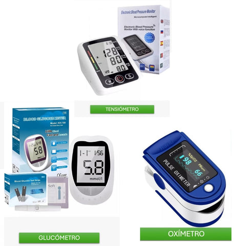 Con nuestro Combo de Monitoreo de Salud, tendrás tres dispositivos fundamentales para el cuidado de tu bienestar y el de tu familia: